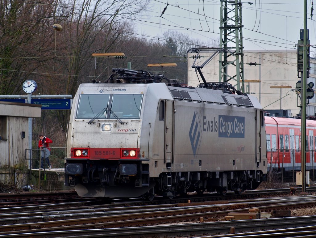 185 581-6  Celine Alia  von Crossrail mit Ewals Cargo Care Werbung rangiert am 22.02.2011 an einen Containerzug in Aachen West, den die Lok gleich Richtung Köln ziehen wird.