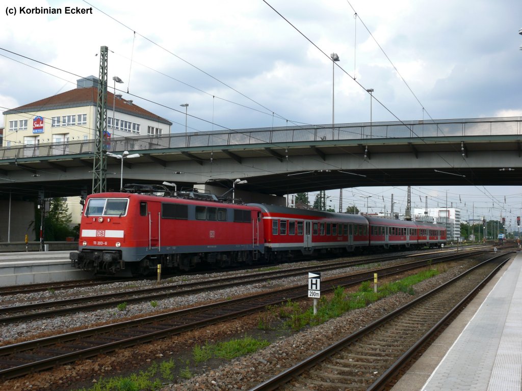 111 203-6 mit der RB 32126 von Plattling nach Neumarkt (Oberpf) bei der Einfahrt in den Bahnhof Regensburg, 11.08.2010