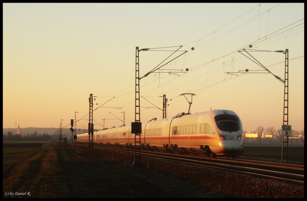 Die Sonne geht gerade unter während eine doppelte ICE-T Garnitur an mir in Mangolding vorbeifährt. Und nanu? Wo ist den der Mond... :) (16.01.11)