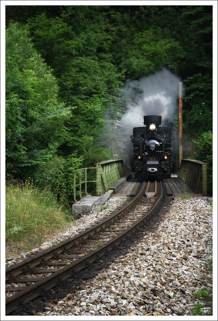 MH 6 Mariazellerbahn fährt mit dem Panoramic 760 von Ober Grafendorf nach Mariazell. Frankenfels Schönau-Tunnel 4.7.2010