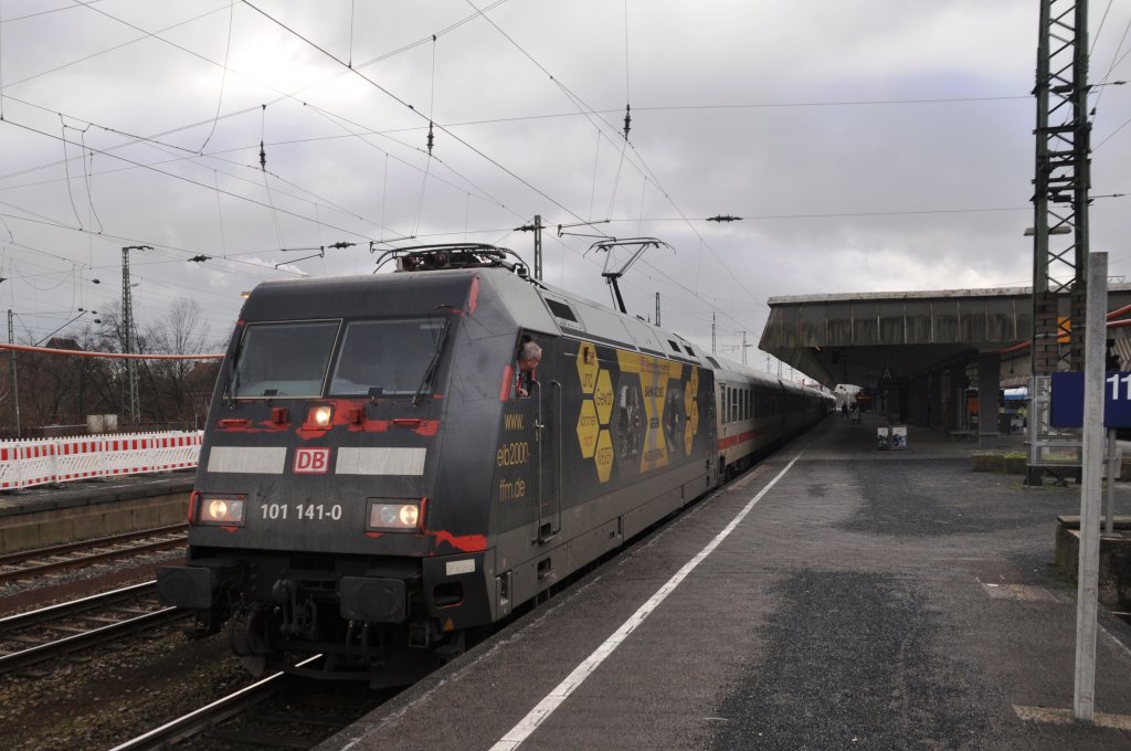 MÜNSTER, 19.01.2011, 101 141-0 mit Sonderlackierung (Bahn-Azubis gegen Hass und Gewalt) als IC 2028 nach Hamburg-Altona in Münster Hbf