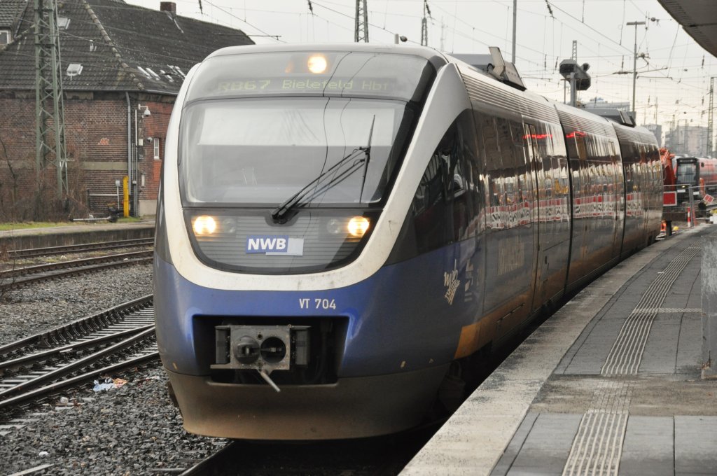 Ein Dieseltriebzug der Abellio steht am 20.01.2011 im Bahnhof von Herne.