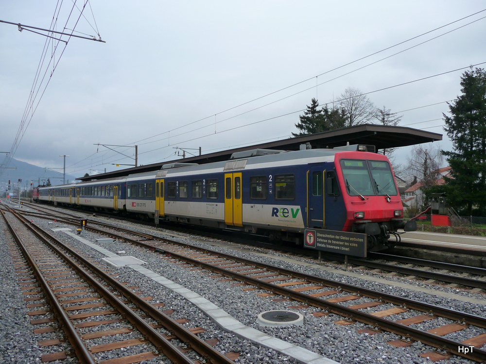 SBB - Regio von Biel nach La Chaux de Fonds mit Triebwagen RBDe 560 218-0 am Schluss im Bahnhof Biel am 15.01.2011