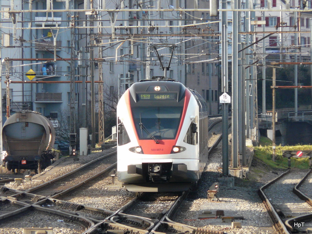 SBB - Triebzug RABe  523 005-7 im Bahnhof Luzern am 08.01.2011