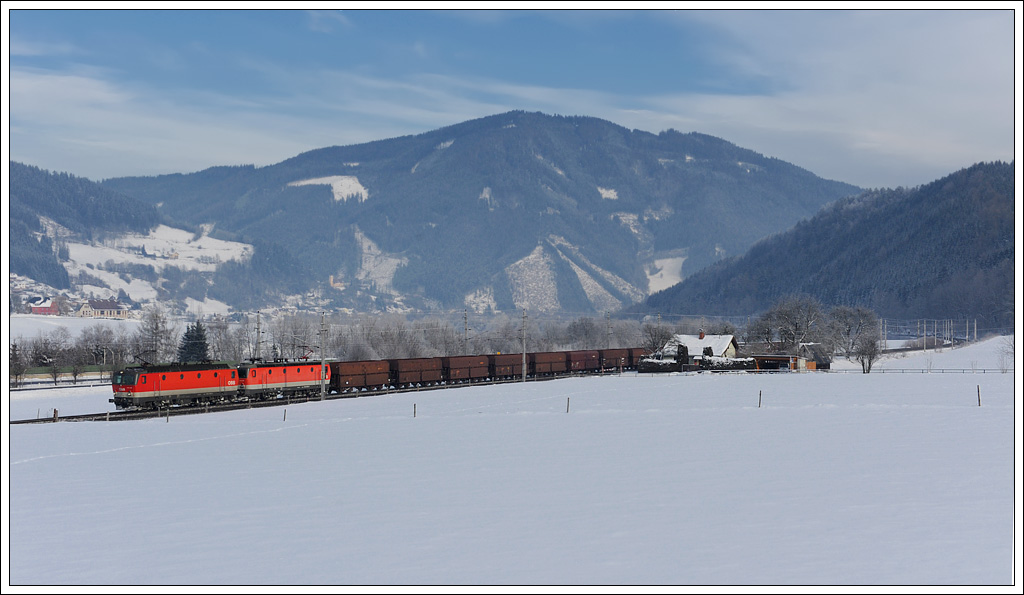 Die ES 64 F4-203 am 04.01.2011 mit einem Erzzug unterwegs bei Vilshofen.