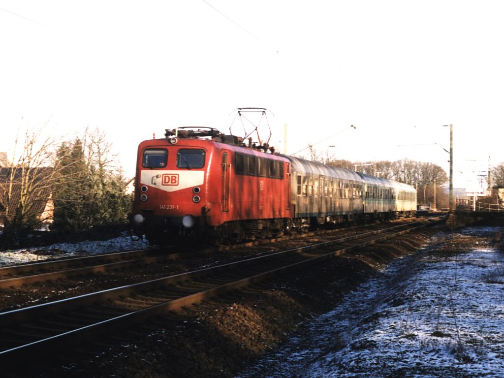 141 231-1 mit Wiehengebirgebahn RB 61 12166 Bielefeld-Rheine auf Bahnhof Hörstel am 23-01-2000. Bild und scan: Date Jan de Vries.