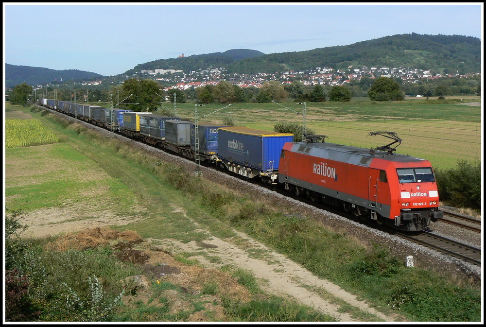 152 025 musste am 20.09.2007 den TEC 40009 nach Basel bringen, als sie bei Großsachsen-Heddesheim auf die Speicherkarte wanderte.