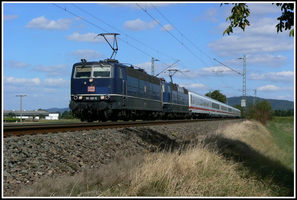 Da die IC Frankfurt-Saarbrücken ab dem Fahrplanwechsel im Juni 2007 planmäßig in Doppeltraktion verkehrten, bestand natürlich die Chance, die beiden blauen 181 201 und 181 206 an einem Zug zu erwischen. Am 15.09.2007 stimmten die Umläufe beider Maschinen überein, sodass die zwei Loks am Mittag gemeinsam den IC 2158 nach Saarbrücken brachten.