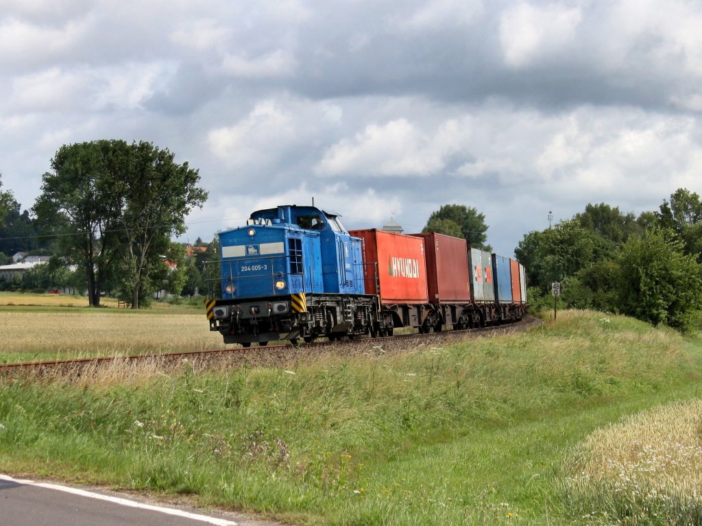 Die 204 005 am 08.07.2011 mit einem Containerzug unterwegs bei Weiden.