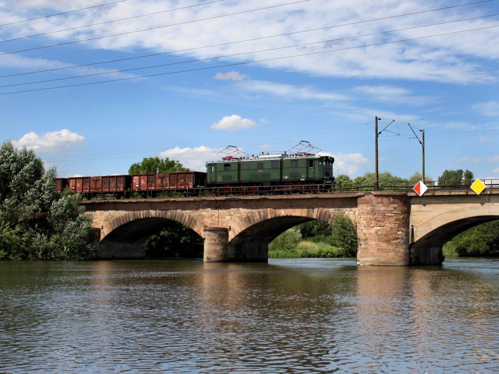 Die E 77 010 am 09.07.2011 mit einem Fotogüterzug bei Stumsdorf.