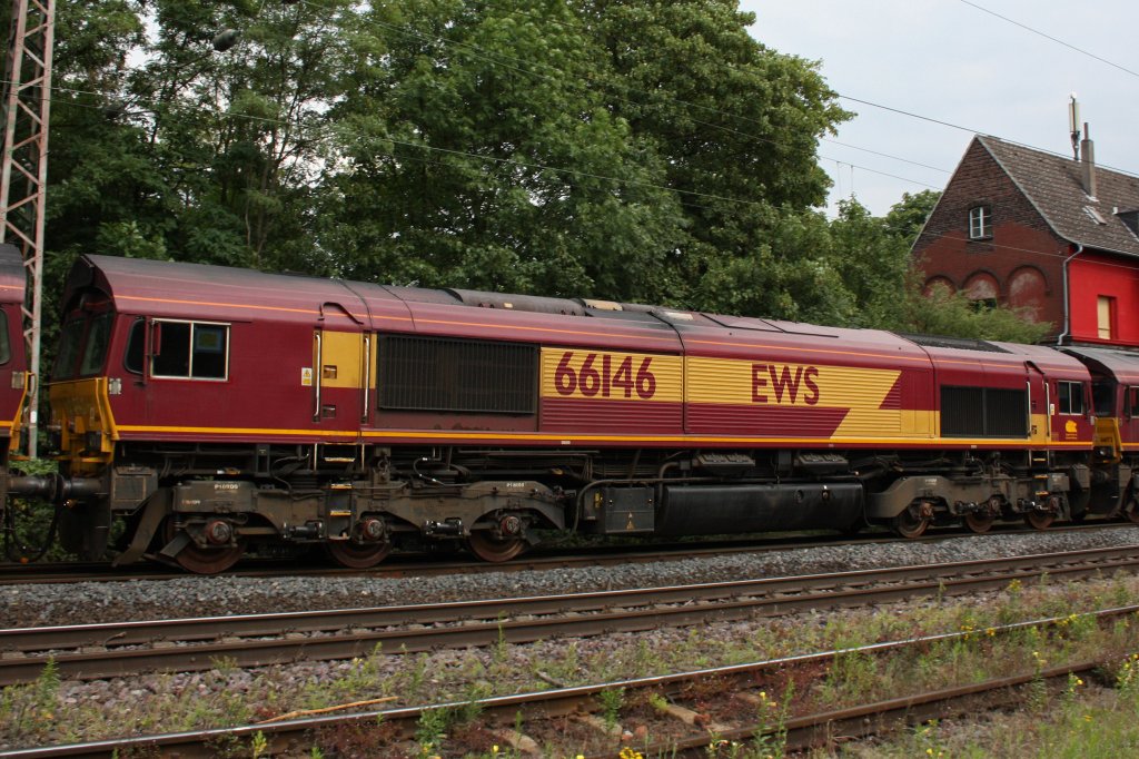 EWS 66146 am 30.6.11 in mitten eines Güterzuges in Ratingen-Lintorf.