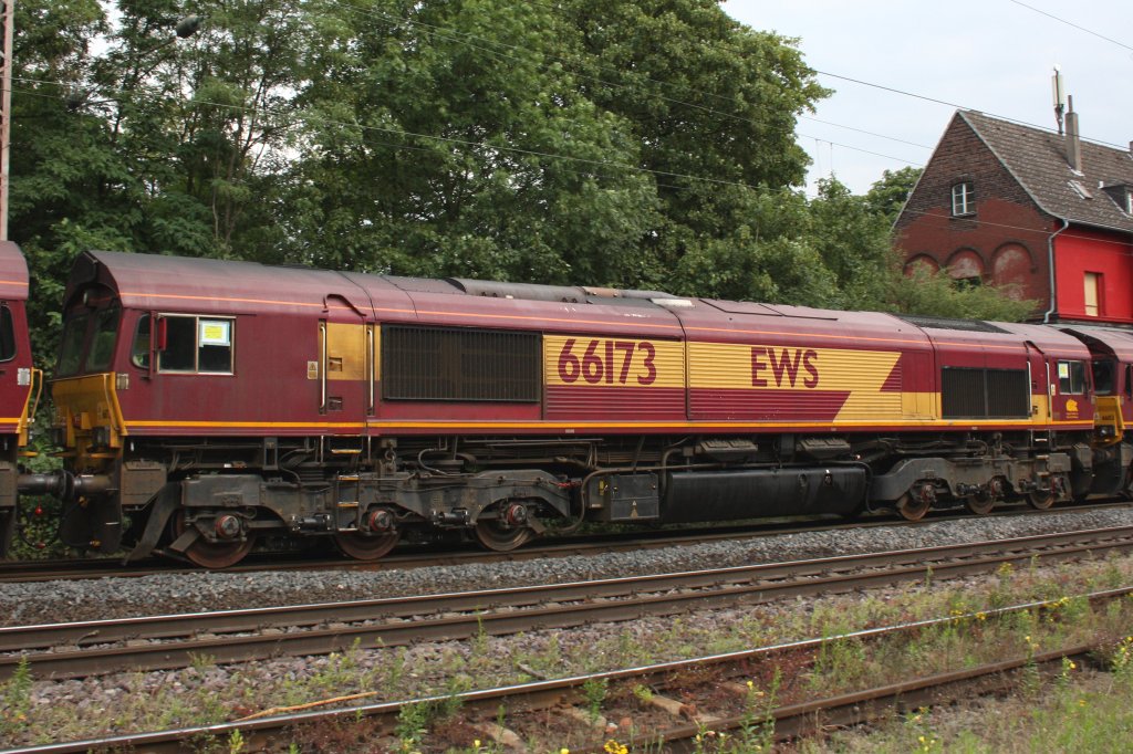 EWS 66173 war eine der vier Loks die am 30.6.11 in mitten eines Güterzuges hingen.Aufgenommen in Ratingen-Lintorf.