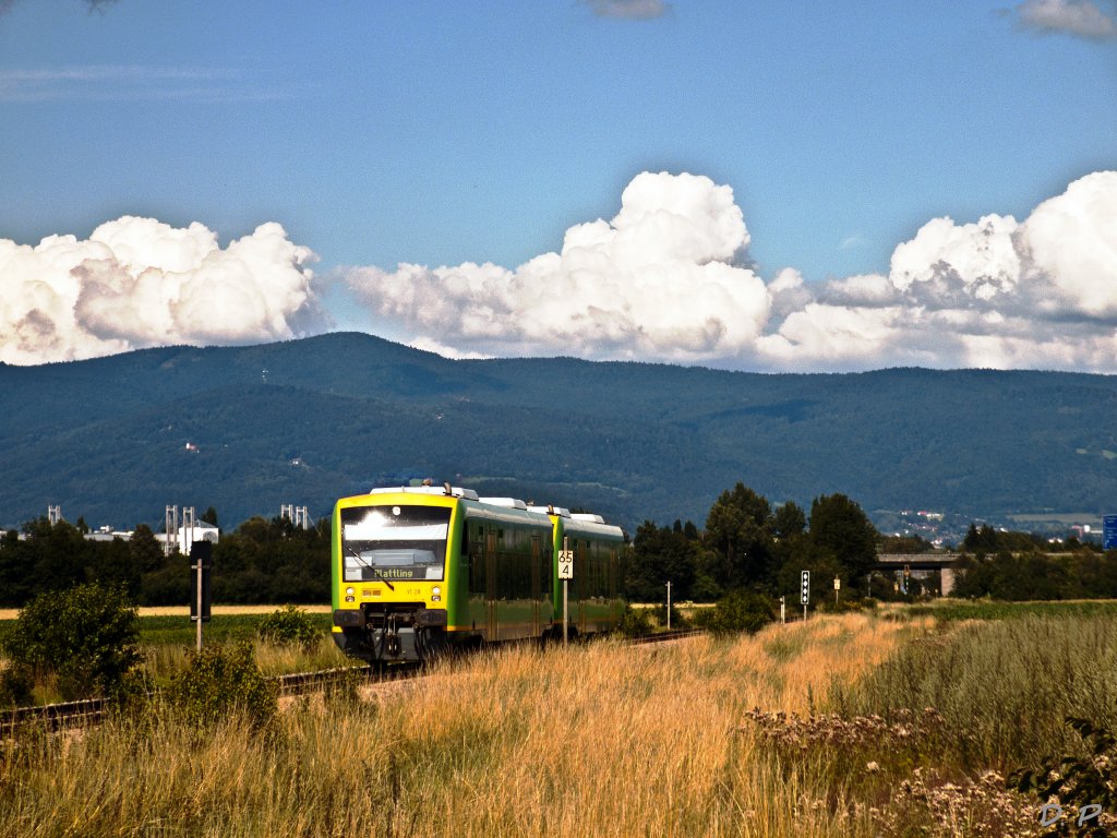 VT 27 und VT 28 als RB von Bayerisch Eisenstein nach Plattling, am 10.07.2011 kurz nach Pankofen.