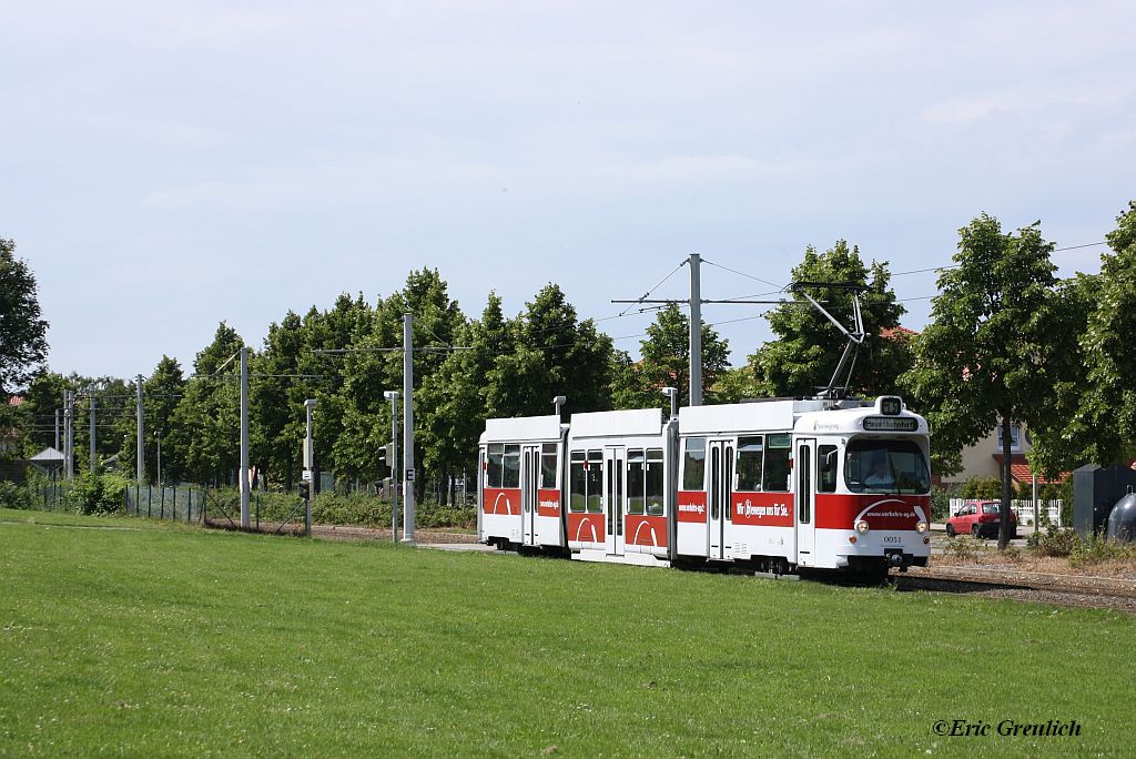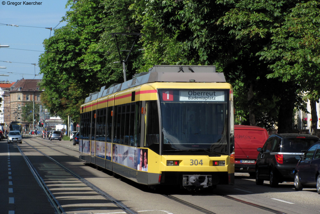 Bauarbeiten zwischen Tullastraße und Durlacher Tor erfordern vom 09.07.11 bis 10.09.11 Umleitungen der Linien 1, S4 und S5. Hier TW 304 zwischen Karl-Wilhelm-Platz und Durlacher Tor. Karlsruhe, 09.07.2011.