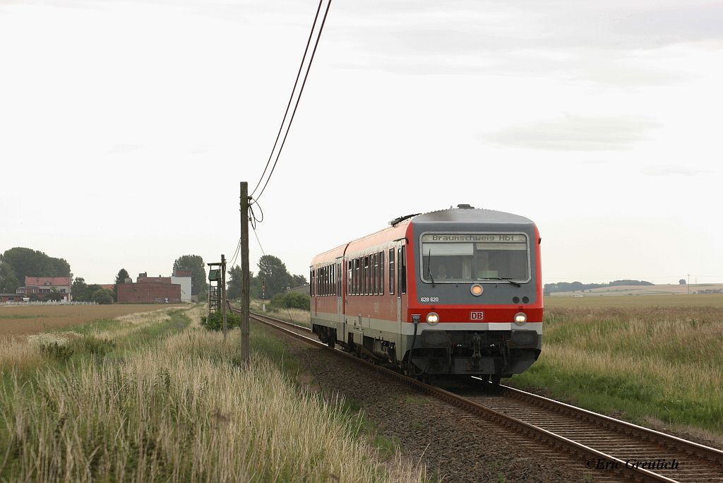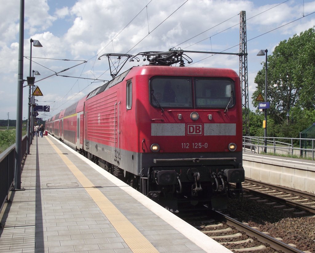 112 125-0 steht am 9. Juli 2011 mit einem RE nach Braunschweig Hbf im Bahnhof Vöhrum.