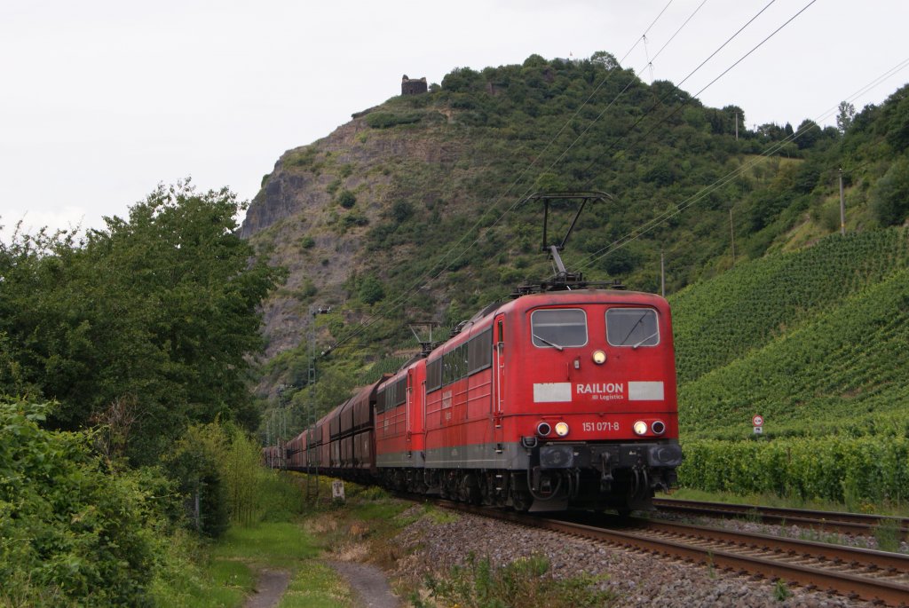 151 071-8 + 151 131-0 mit einem Kohlezug in Leutesdorf am 02.07.2011