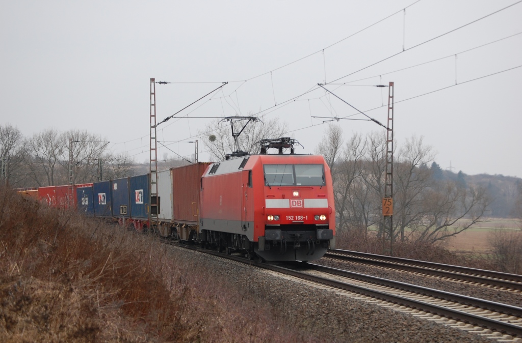 152 168-1 mit einem Containerzug am 19.02.2011 bei Salzderhelden