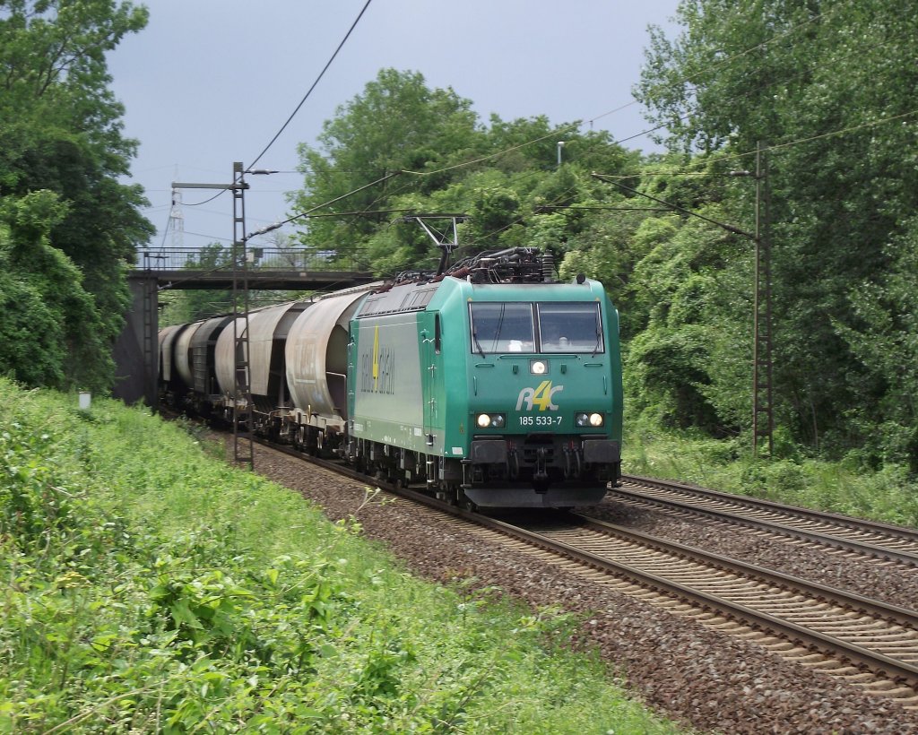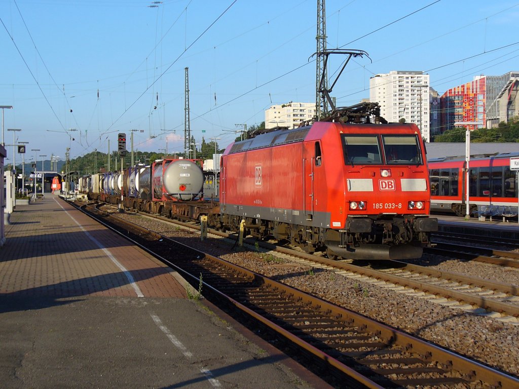 185 033-8 zieht einen Chemiezug am 11.07.2011 durch Kaiserslautern Hbf