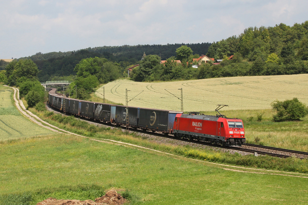 185 242 mit einem Güterzug am 06.07.2011 bei Edlhausen.