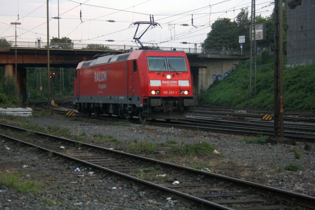 185 263-1 von Railion kommt von einer Schubhilfefahrt vom Gemmenicher-Tunnel bei Sonnenuntergang.