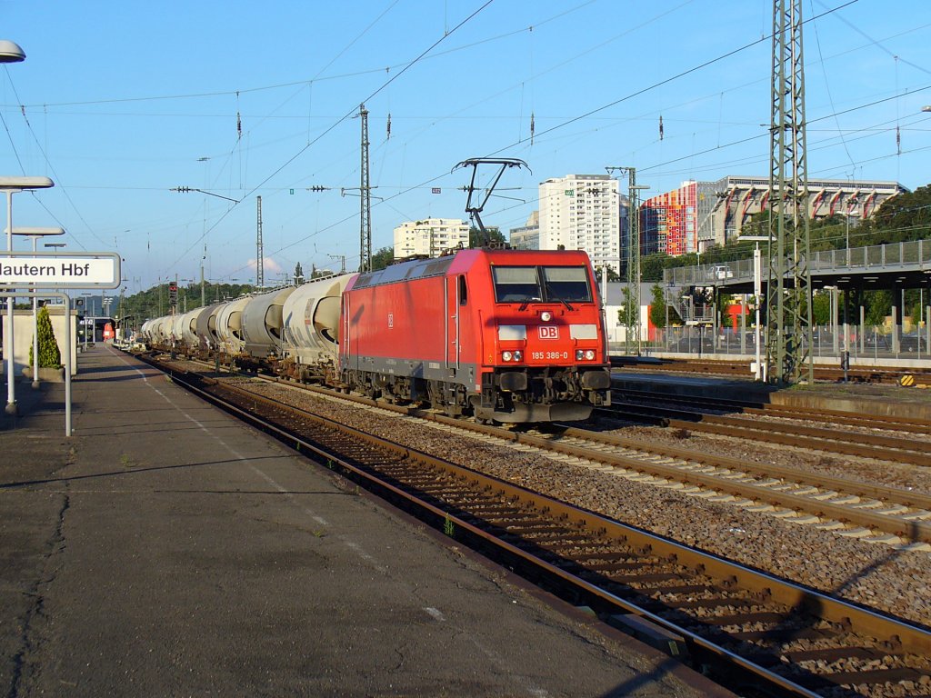 185 386-0 zieht einen Kesselwagenzug am 11.07.2011 durch Kaiserslautern Hbf