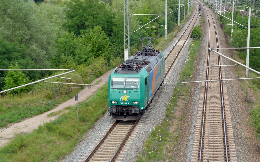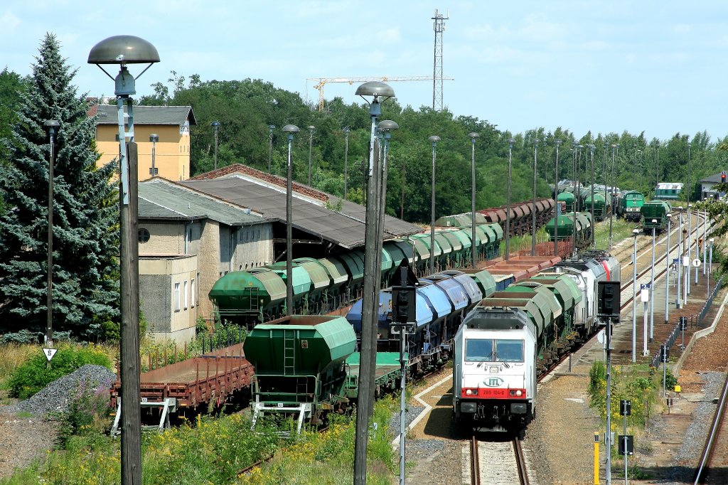 185 375 zog am 08.07.11 einen Hangartner durch Muldenstein Richtung Wittenberg.