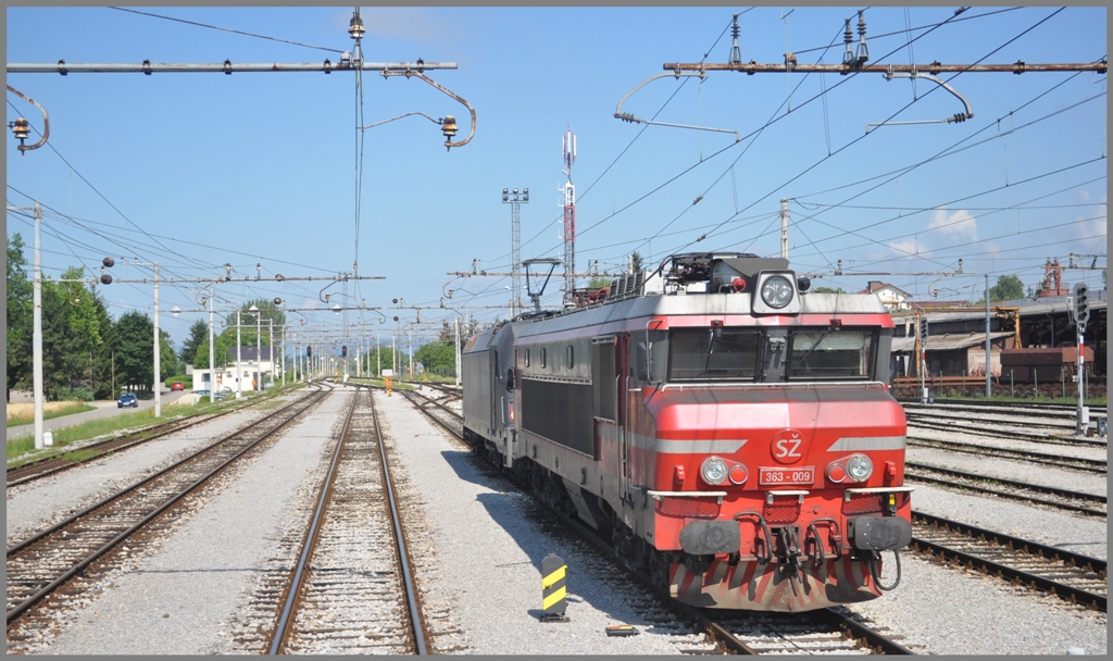 363-009 in Dobova. (02.07.2011)Aufnahme aus dem Schlusswagen.