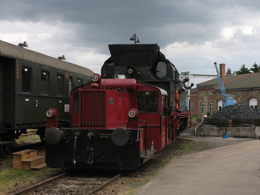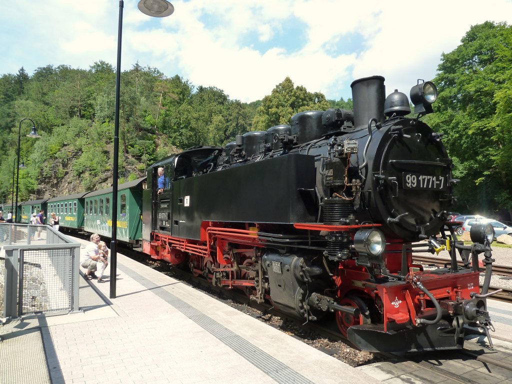 99 1771 steht im Bahnhof Rabenau.(Weißeritztalbahn)