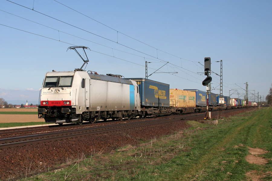 Am 02.04.2011 zog 185 636 einen Güterzug durch Mangolding Richtung Regensburg.
