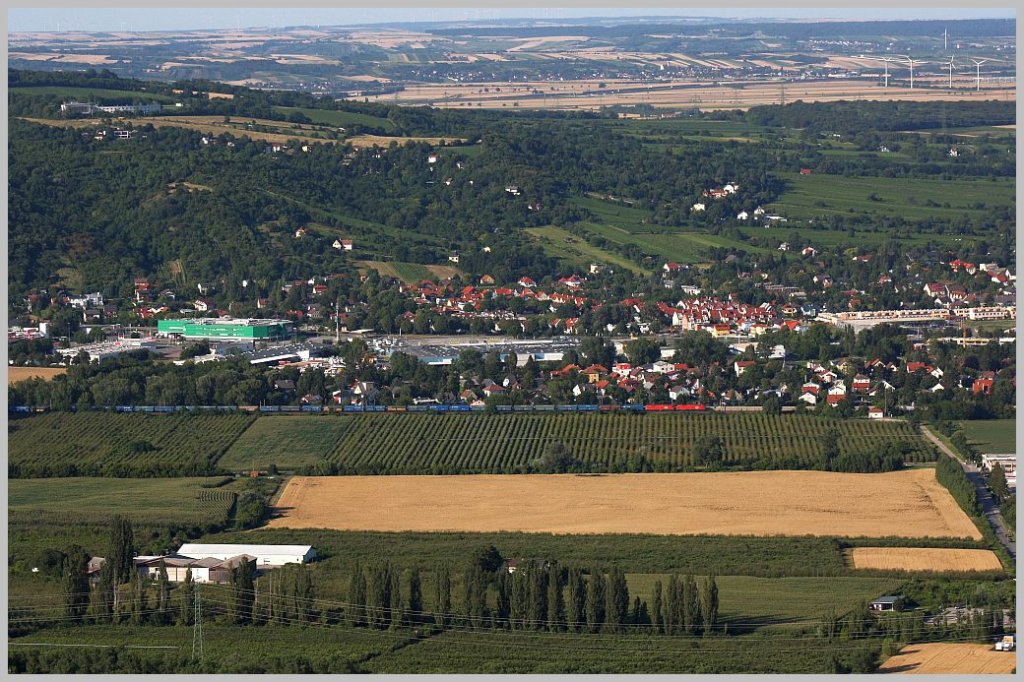 Bei Langenzersdorf ist ein Taurus-Tandem vor einem Kohlewagenleerzug Richtung Wien unterwegs. 10.07.11