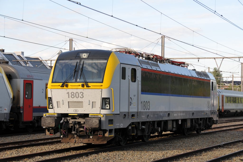 Der Siemens-Eurosprinter 1803 im Abendlicht des 08/07/2011 im Bahnhof Welkenraedt. Seit dem 6. Juli werden 1801 und 1803 im Personenverkehr vor den IC A-Zügen Eupen - Oostende eingesetzt.