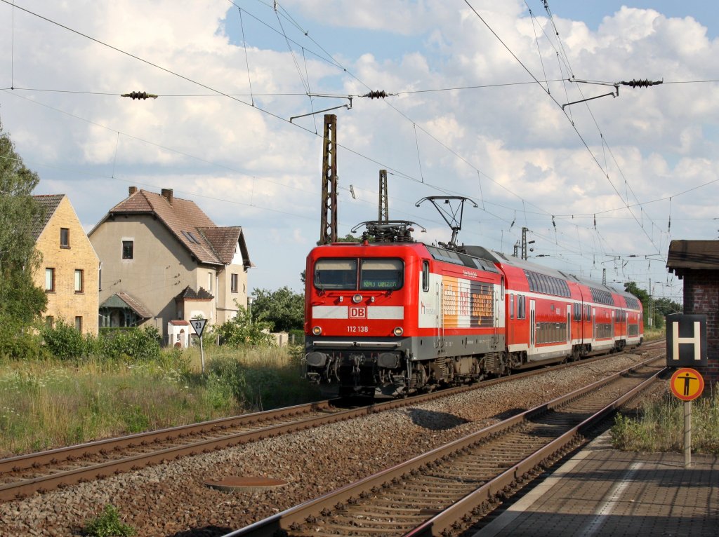 Die 112 138 mit einer RB am 09.07.2011 bei der Einfahrt in Stumsdorf.