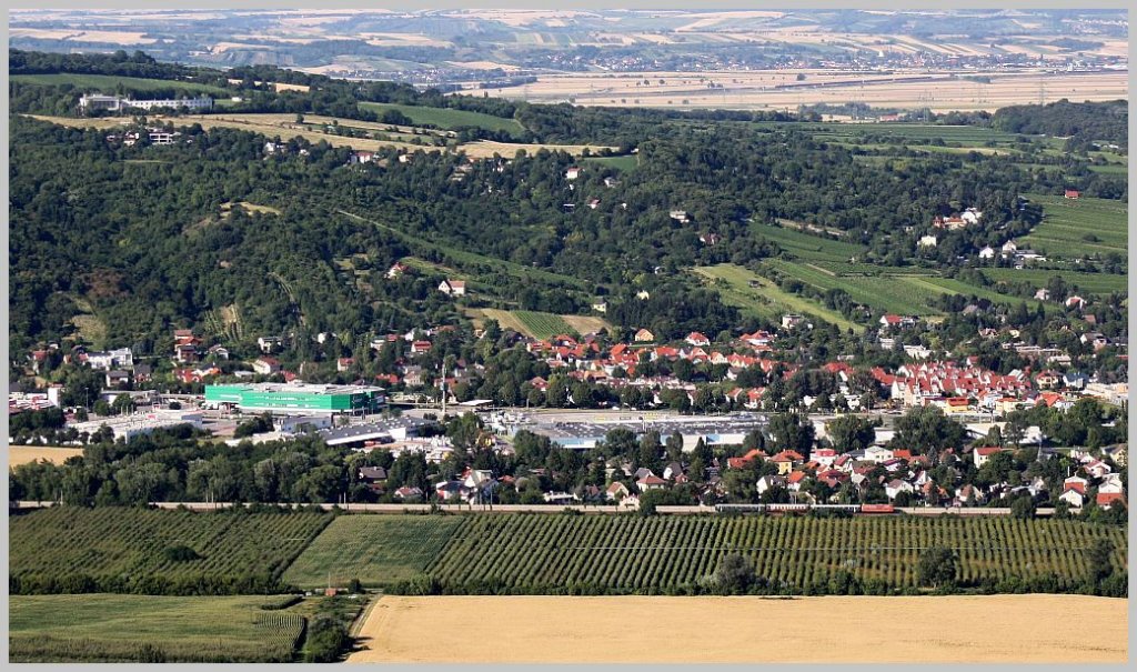 Die 2143 35 ist mit EZ 7399 bei Langenzersdorf auf dem Weg nach Wien. Die Aufnahme entstand am 10. Juli 2011 am Leopoldsberg.