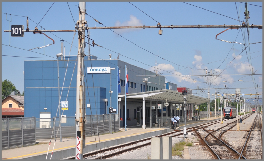 Damit ja kein ungebetener Zug durch die EU-Aussengrenze rauscht, wurden in Dobova einige Schikanen eingebaut. (02.07.2011)Aufnahme aus dem Schlusswagen.