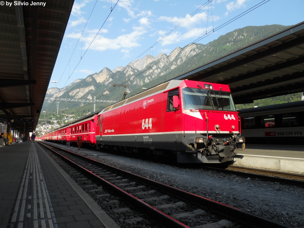 Die wieder errötete Ge 4/4''' 644 ''Savognin'' am 6.7.2011 in Chur als RE 1161 nach St.Moritz