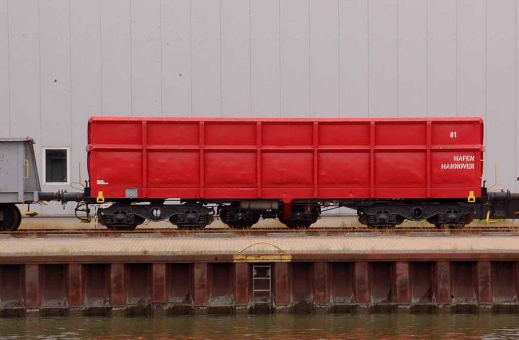Diese eher mir unbekannte Güterwagenserie ist nicht ein Modell, sondern in offener Güterwagen der Hafeneisenbahn der Stadt Hannover. Gesehen am VW Werk im Nordhafen über den Mittelandkanal hinweg. 10.7.2011