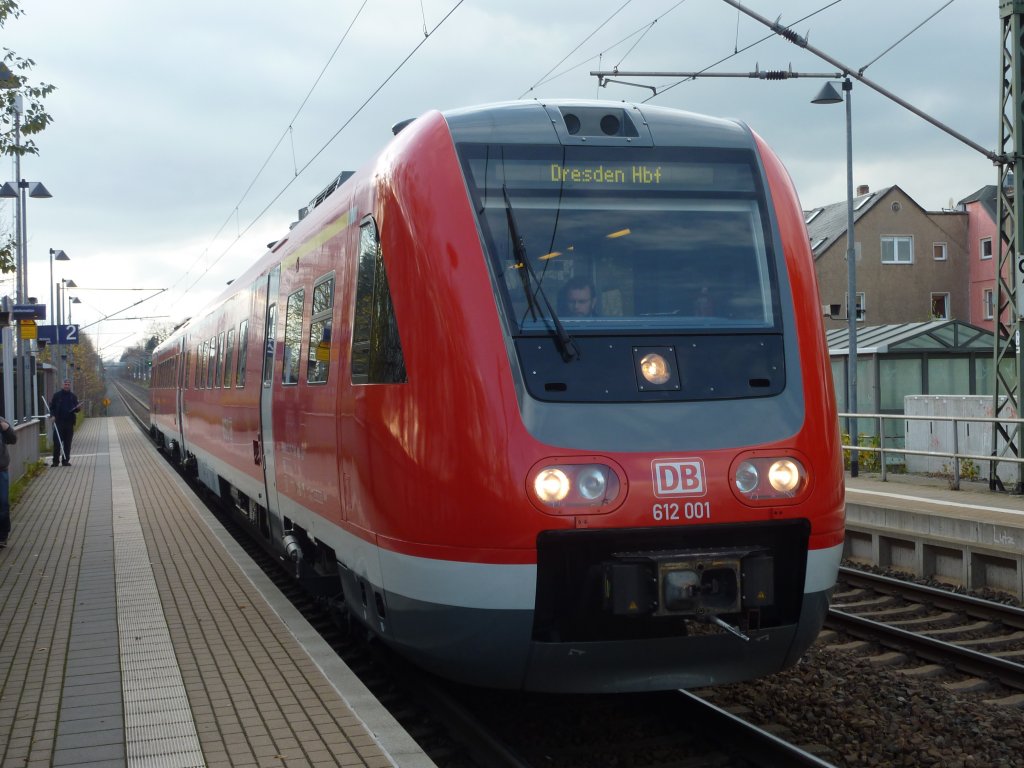 Durch Lokmangel hält am 11.11.10 612 001 hier in Grüna auf dem Weg nach Chemnitz HBF