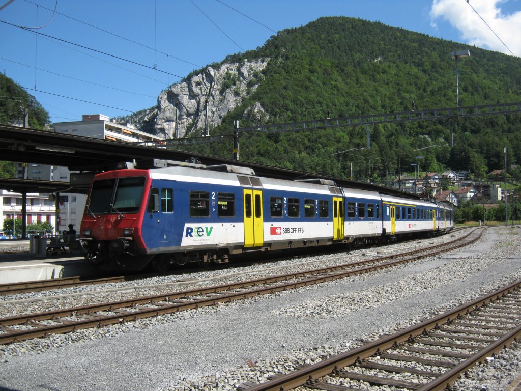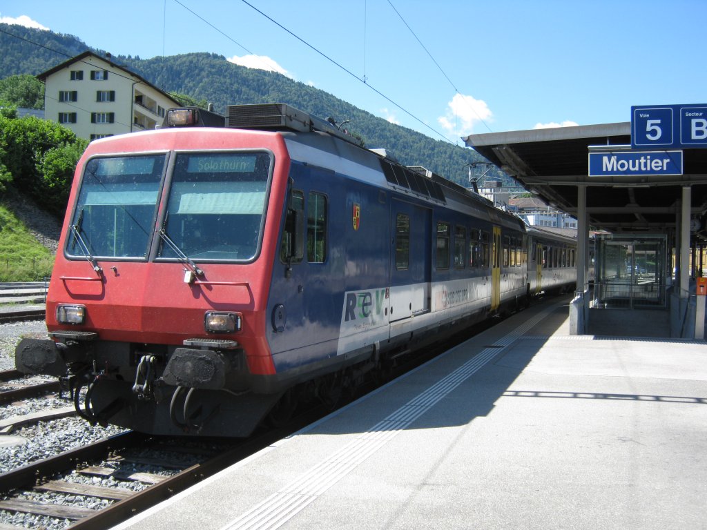 Ersatz Regio 5230 Sonceboz-Sombeval-Moutier-Solothurn; Der planmässige Domino musste durch einen 3-teiligen NPZ (560 118 REV) ersetzt werden. So kam es zu diesem äusserst seltenen Einsatz eines NPZ auf dieser Linie. Zumindest der Fotograf hatte seine Freude am NPZ..., Moutier, 11.07.2011.
