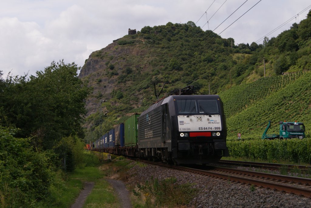 ES 64 F4-999 mit einem Containerzug in Leutesdorf am 02.07.2011