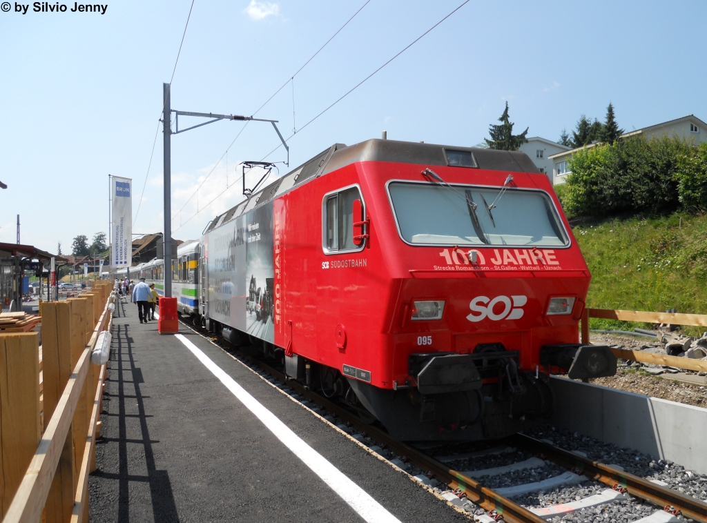 Re 456 095-9 ''100 Jahre Romanshorn - Uznach'' am 5.7.2011 am Shcluss eines Voralpen-Express nach Luzern in Küssnacht am Rigi. Dieser Bahnhof wird zur Zeit umgebaut, damit in absehbarer Zukunft die Züge zum Gotthard wieder über Küssnacht nach Immensee fahren, um die Strecke Rotkreuz - Luzern entlasten zu können.