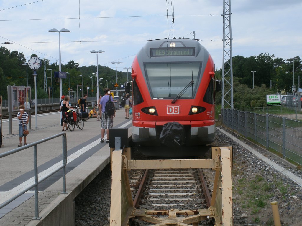 Rechtzeitig vor dem Prellbock in Binz zum stehen gekommen ist,am 09.Juli 2011,der RE aus Stralsund der von 429 028 gefahren wurde.