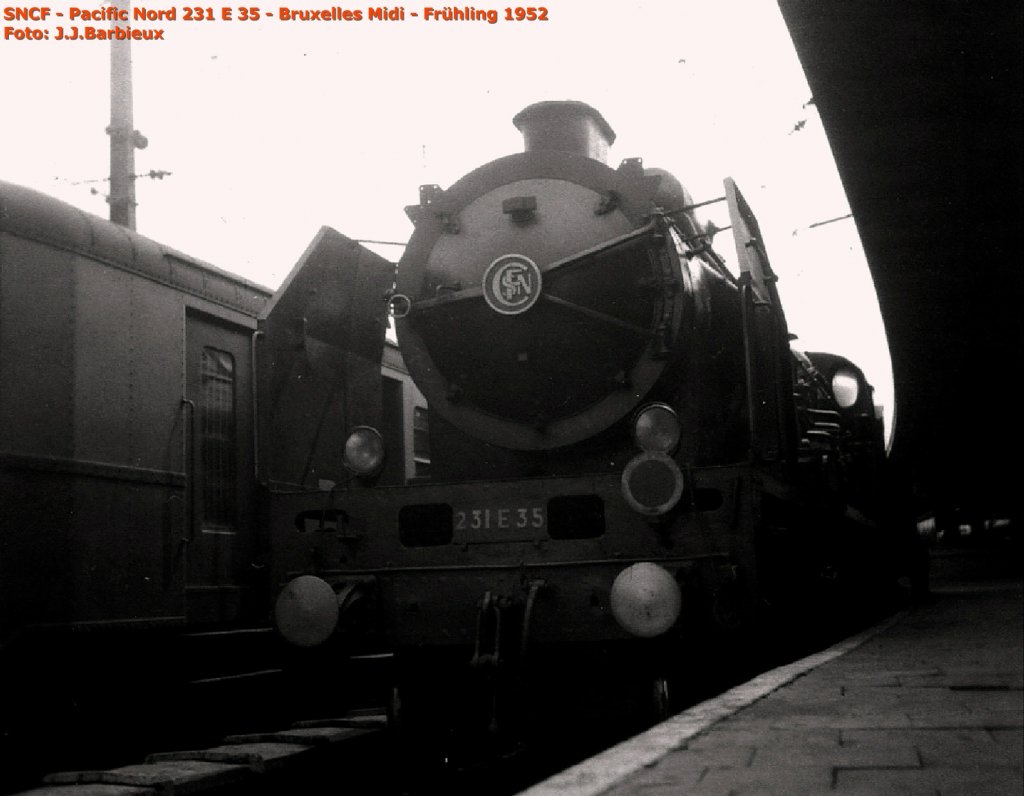 SNCF - Die Lok 231 E 35 (Région Nord) ist in Bruxelles Midi und wartet für Abfahrt nach Paris. Dieser Zug, mit Wagen aus Amsterdam, fuhr einen Speisewagen von der CIWL sowie zwei CIWL Pullman Wagen (Foto: J.J.Barbieux).