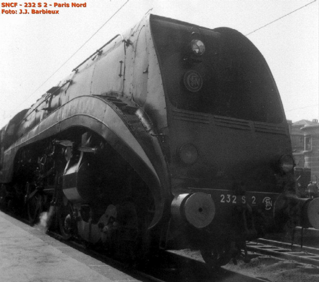 SNCF - Paris Nordbahnhof in 1952 - Eine 232 S konnte man nur auf den Strecken der Région Nord treffen. Sie waren regelmässig auf der Linie nach Jeumont (Belgische Grenze) mit dem Nord Express , später auch mit dem Paris-Skandinavien Express zu sehen. Foto : J.J.Barbieux.