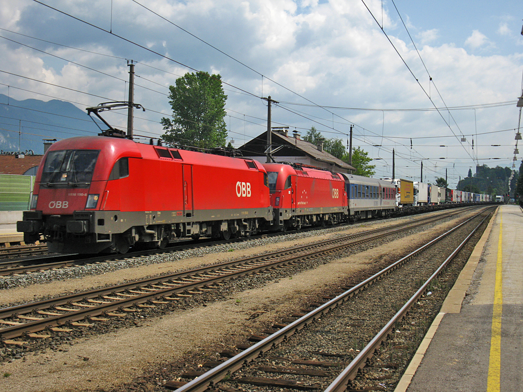 1116 254 mit 542 auf der Fahrt nach Innsbruck in Brixlegg am 5.7.2011
