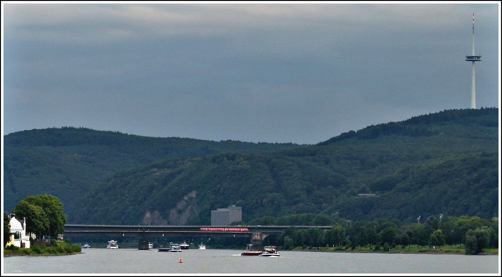 - Modellbahncharakter - Ein Regio nach Saarbrücken überquert am 24.06.2011 den Rhein in Koblenz. (Jeanny)