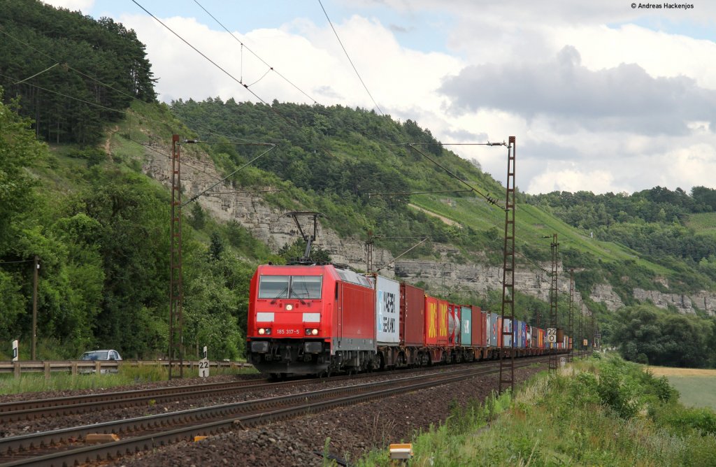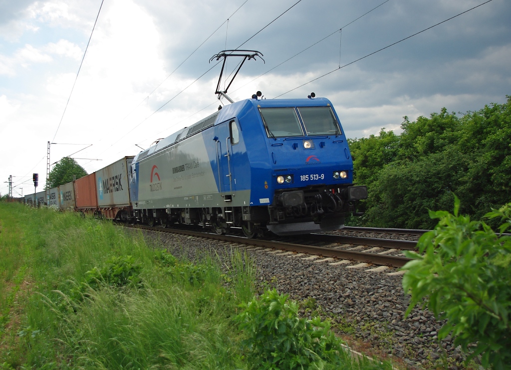 Bei schönen Wetter zieht 185 268-0 am 12.07.2011 einen gemischten Güterzug durch Kaiserslautern