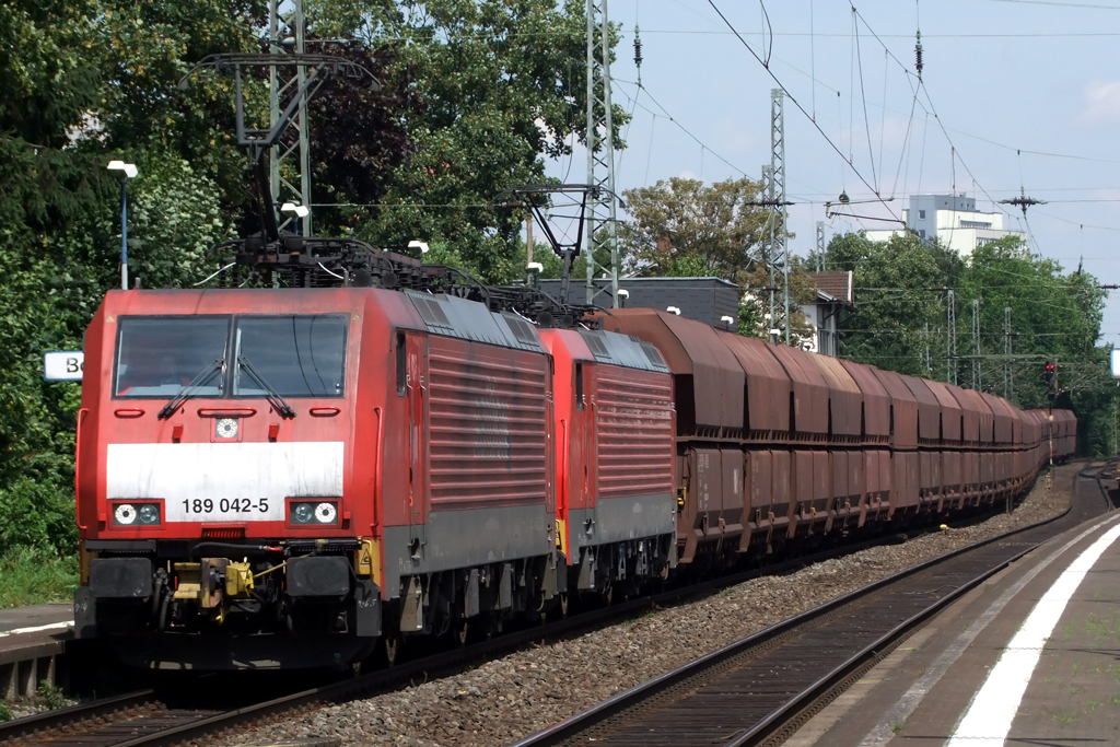 - Modellbahncharakter - Eine Lok der WAB zieht am 24.06.2011 einen Güterzug durch Koblenz-Ehrenbreitstein. (Hans)