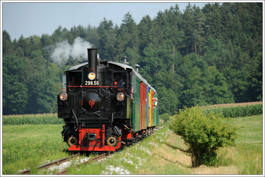 298.56 mit dem Stainzer Flascherlzug am 10.7.2011 zwischen Herbersdorf und Stallhof aufgenommen.