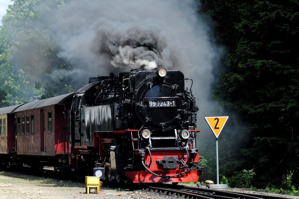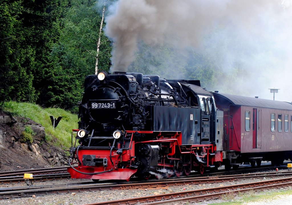 99 7243-1 der Harzquerbahn bei Ausfahrt aus 3 Annnen Hohne am 09.07.2011