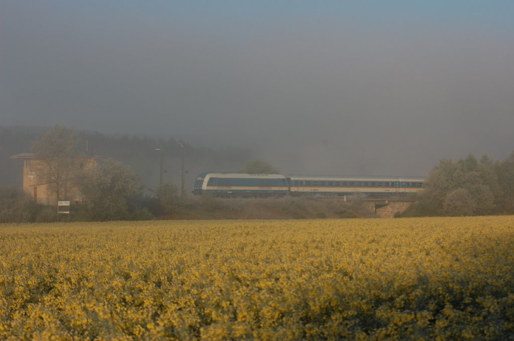 Am 04.05.2011 wollte ich den ALX 351 nach Prag in Hiltersdorf ablichten, doch machten mir dicke Nebelschwaden einen Strich durch die Rechnung...